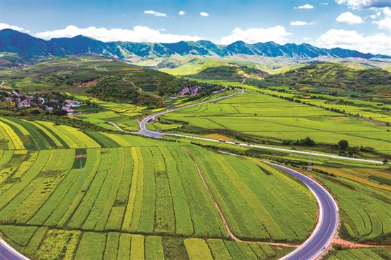 在這里,山水皆靈,無論是層巒疊嶂、云開日出,還是淳樸民俗、紅色傳奇,皆是亮眼的風景;在這里,阡陌相通,無論是紅黑枸杞、五谷雜糧,還是葡萄美酒、蘋果梨花,正成搶手的生意。路網暢通處,熙熙攘攘,日益高效的城鄉(xiāng)人流物流,促進了農業(yè)產業(yè)轉型升級,也讓美麗鄉(xiāng)村宜居宜業(yè)煥發(fā)生機……六盤山,曾經記錄下歷史轉折的奇跡,而今正見證一個擺脫貧困的新時代。